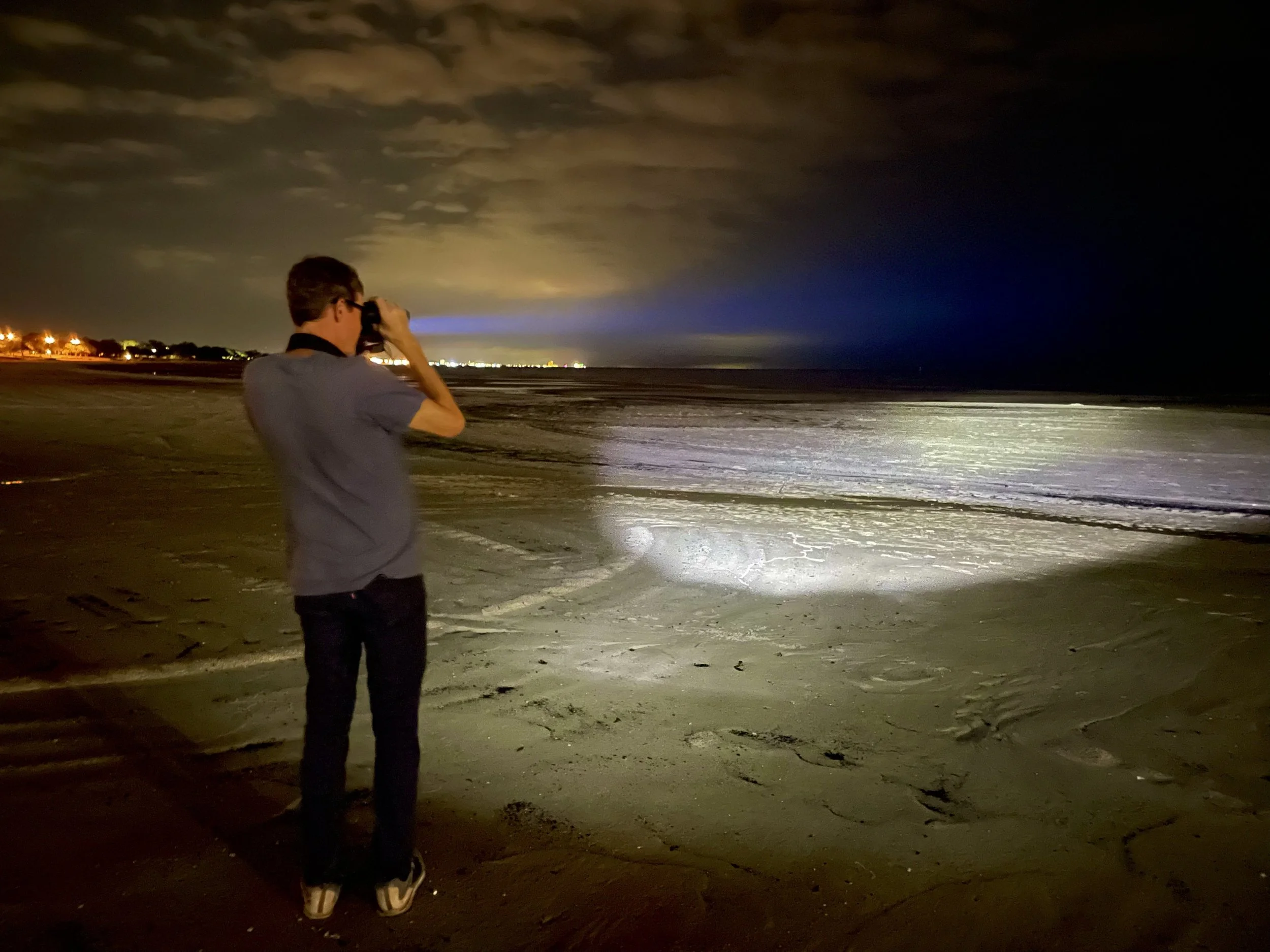 Things started well around 12:30am, with cooperative Great Horned Owl at a stakeout spot, and all three Catharus thrushes were vocal enough to pick out from their nighttime flight calls. But our nighttime freshwater marsh spot was "stingy." Rails, gallinules, and owls were quiet and unresponsive, including species that were cooperative at the same site last year. Hmm. Off to our dawn breeding bird spot on the Pascagoula River, which was also not easy--we got most of our target species (e.g., Yellow-throated Warbler, Yellow-throated Vireo, Pileated Woodpecker), but two key species (Swainson's & Kentucky Warblers) proved elusive. Our luck improved at the Seaman Rd Sewage Lagoons, which was hopping. All our target birds popped up in quick succession, plus some nice bonuses made appearances, such as Peregrine Falcon and Redhead. We were back on track and feeling good! Our main oceanside shorebird spot also delivered, plus a few migrant warblers made appearances in the seaside shrubs. Heading to our first real migrant trap, we had momentum.
